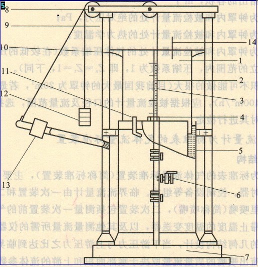 1鐘罩;2標尺;3-擋板;4-光電發(fā)訊器;5一液槽;6-調(diào)節(jié)閥門;